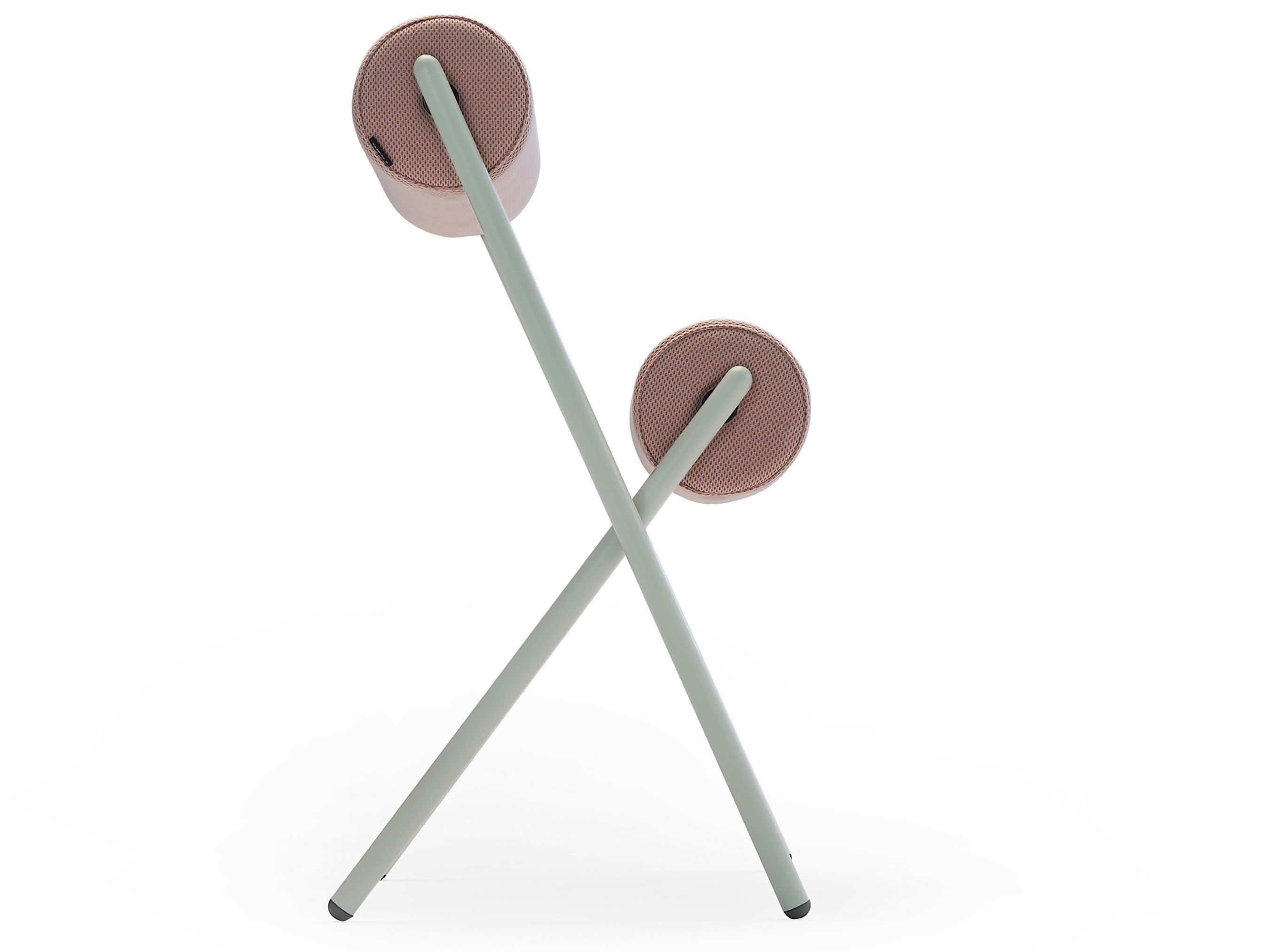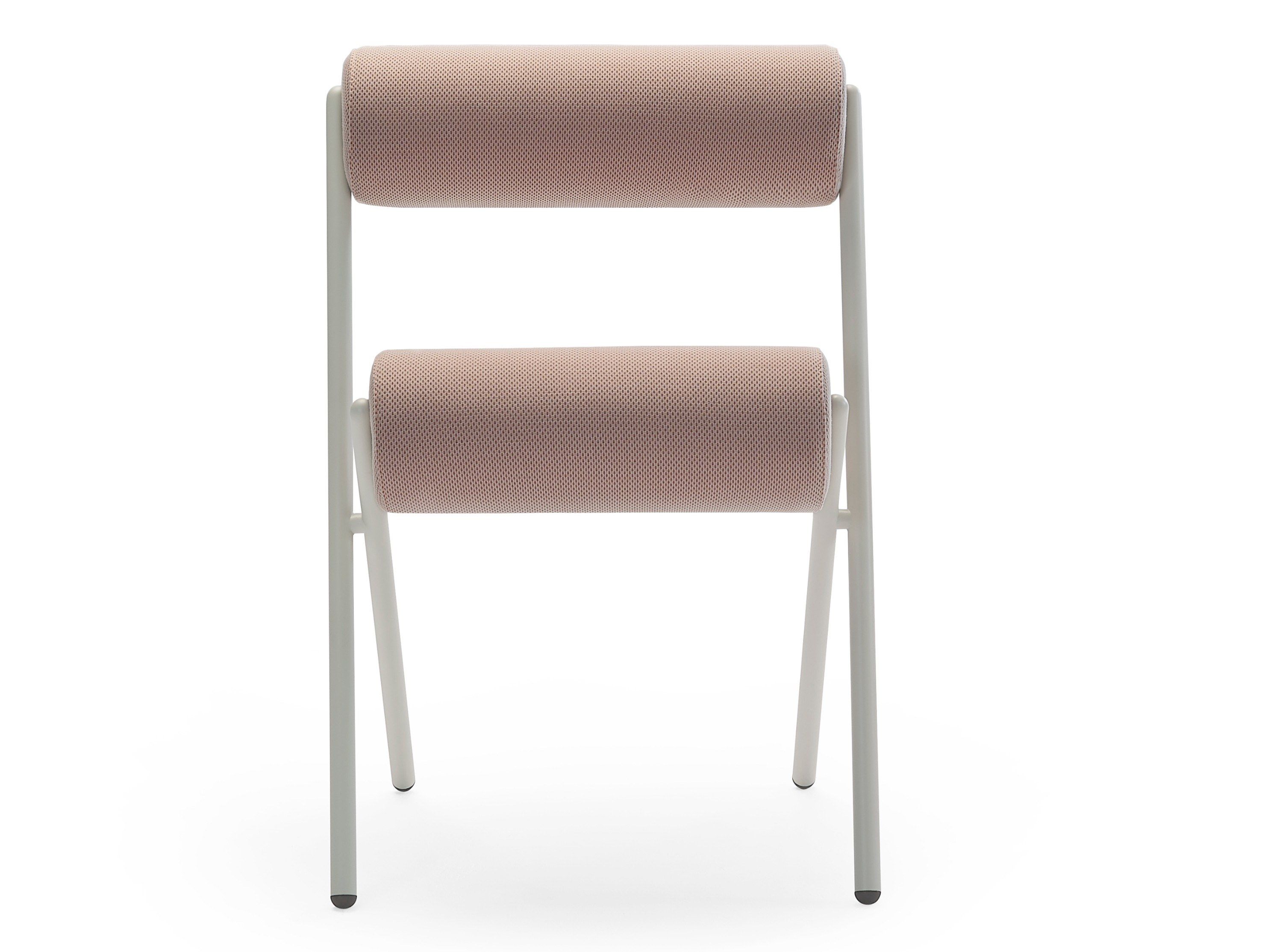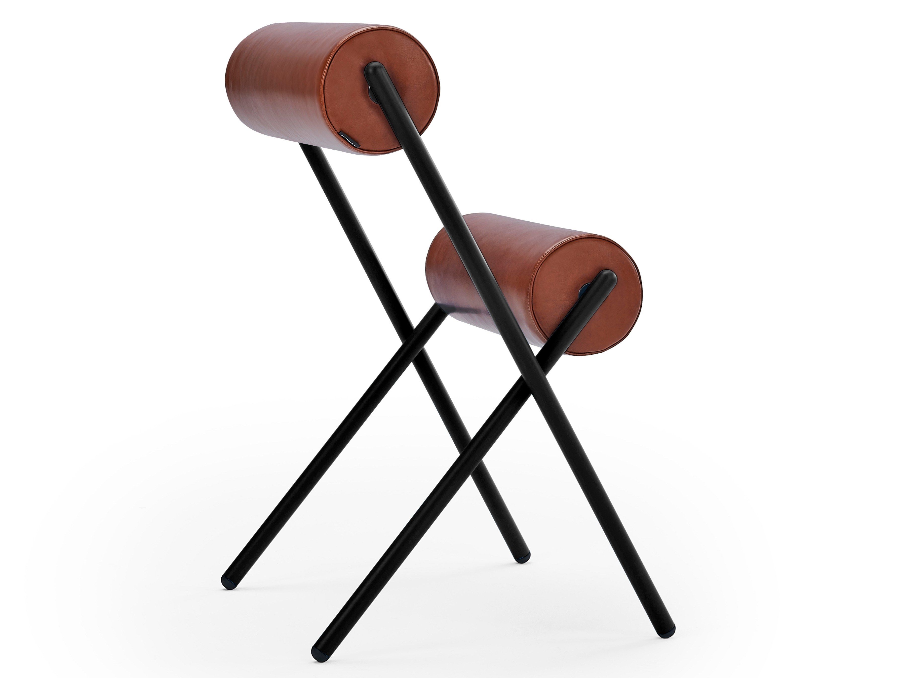 Evitando ornamenti e dettagli superflui, i creativi valenziani riducono la forma convenzionale di una sedia a due elementi puri: una struttura in acciaio e due cuscinetti cilindrici per schienale e sedile.
