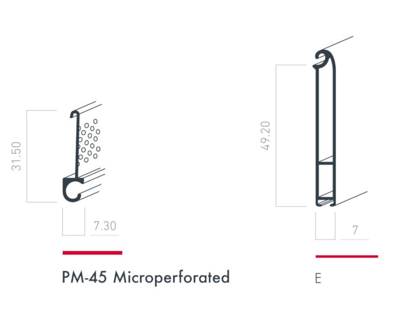 La stecca microforata a chiusura automatica PM-45 permette un'elevata aerazione e luminosità dell'ambiente, offrendo quella sicurezza in più, garantita da una lamella autochiudente. Il sistema di autochiusura permette di bloccare le guarnizioni in gomma delle guide laterali, evitandone l'apertura e proteggendo la vostra casa da intrusioni. È compatibile con il set di tappi in modo da evitare lo spostamento laterale delle lamelle.
