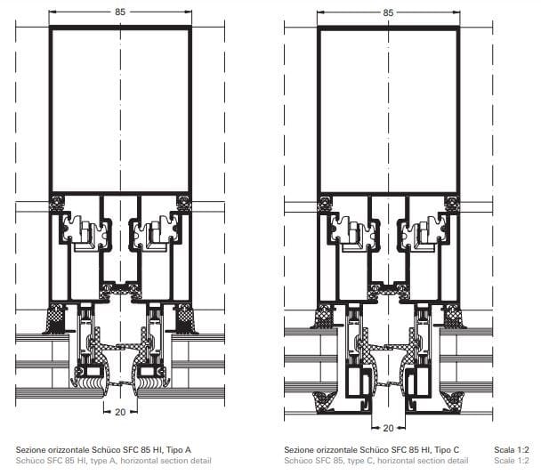 - Sezione architettonica in vista di 85 mm