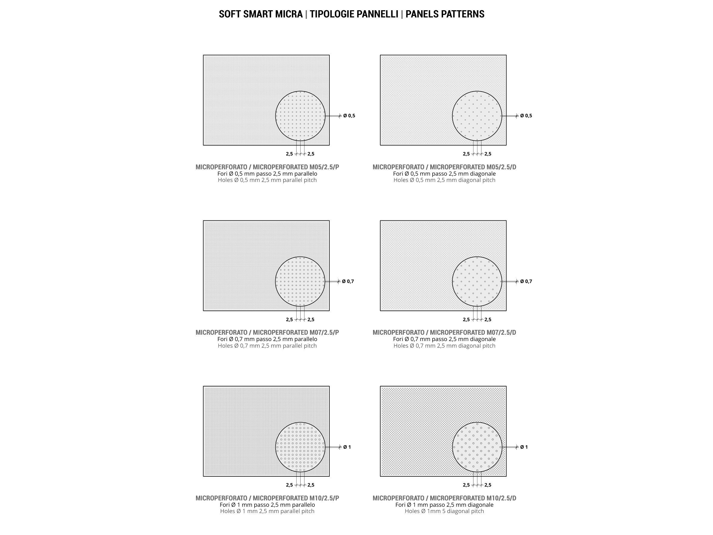 L’architettura contemporanea ricerca superfici lisce ma con elevate prestazioni acustiche. La tecnologia Micra coniuga tutto questo in un’unica soluzione sorprendente, prevedendo fino ad 160.000 microfori per m2 di ø 0,5 - 0,7 -1 mm praticamente invisibili, che formano un elevatissimo numero di camere risuonanti garantendo un eccellente comfort acustico agli ambienti. Il sistema è adatto a tutti i controsoffitti ed i rivestimenti della gamma Soft Smart offrendo soluzioni acusticamente performanti e con alto contenuto di design.