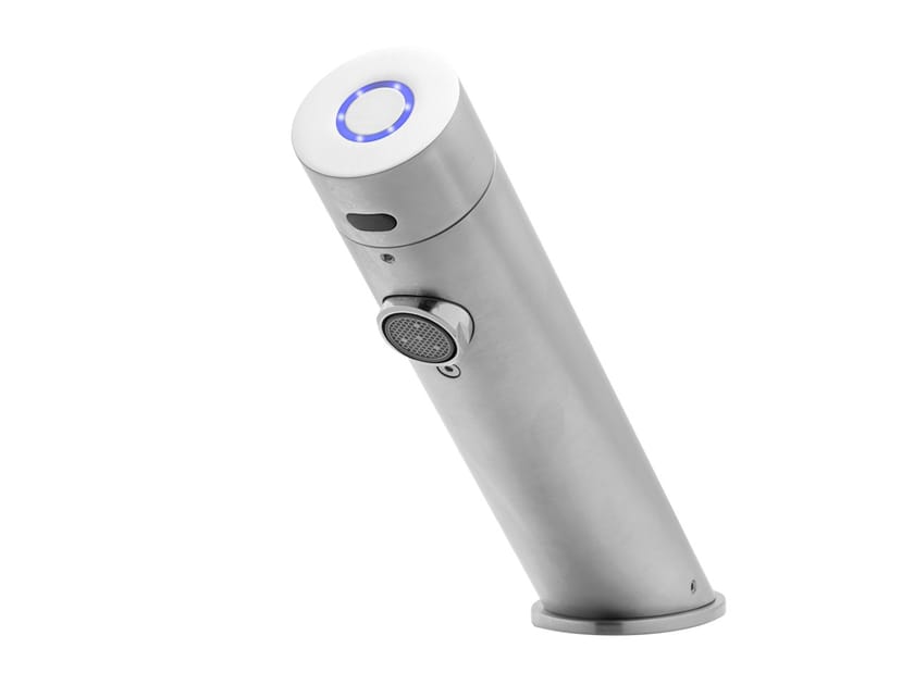 Rubinetto elettronico touch-free per installazioni su piano. Attivato da un sensore a infrarossi. Con illuminazione ad anello LED. Per acqua fredda o premiscelata. Filtri inclusi. L'elettrovalvola a scatto si trova sopra il ponte all'interno del prodotto per una maggiore protezione da atti vandalici. Costruzione monoblocco in ottone massiccio. Impostazioni regolabili tramite telecomando: intervallo del sensore, tempo di sicurezza, ritardo, ritardo, spegnimento e ripristino delle impostazioni di fabbrica.