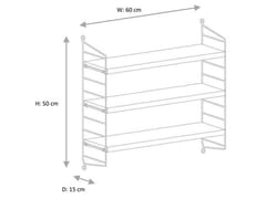 Il nome deriva dalle sue dimensioni comode e maneggevoli. Con un'altezza di 50 cm, una larghezza di 60 cm e una profondità di 15 cm è possibile posizionare String® Pocket ovunque, dalla camera da letto come alternativa al comodino, sopra un armadio, nel corridoio, in soggiorno o in cucina.