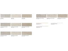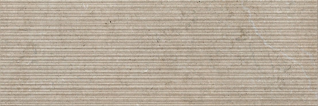 La pasta bianca è proposta sui tre colori più chiari, nel formato 25x75, sia su fondi lisci che nelle strutture tridimensionali effetto pietra lavorata.