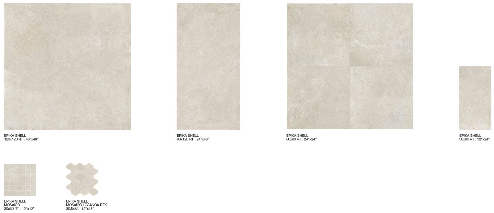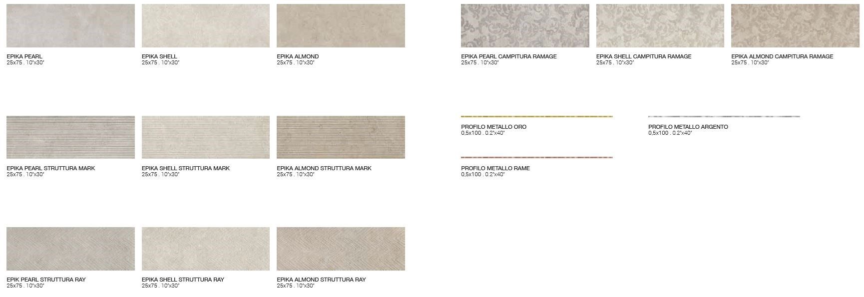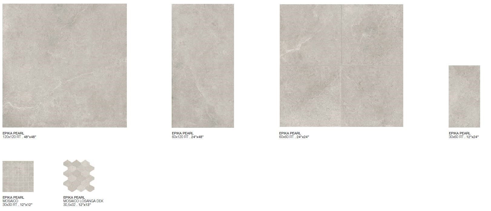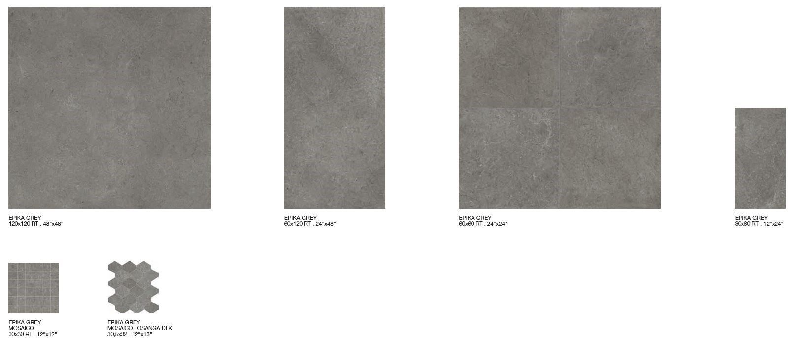 Nella realizzazione della sua nuova collezione Epika, Supergres trae ispirazione da un limestone di origine francese, una pietra raffinata ed elegante, caratterizzata da movimenti grafici morbidi e discreti. Continuando il percorso iniziato con i recenti progetti Art e Medley, anche Epika è un progetto completo realizzato sia in gres porcellanato che in pasta bianca. La gamma del gres si sviluppa in 5 colori e in 4 formati rettificati, che vanno dai grandi formati 120x120 e 60x120, fino ai più tradizionali 60x60 e 30x60.