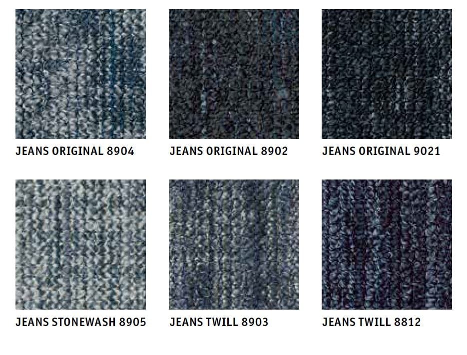 Jeans è la nuova collezione di moquette in quadrotte dallo stile contemporaneo ispirata completamente al tessuto in denim. Jeans propone 6 diverse sfumature di colore disponibili in 3 design, ideale per suddividere gli spazi e differenziare le zone all’interno di ambienti di lavoro. Con la possibilità di scegliere un effetto chiaro, simile alla pietra pomice, o l’inconfondibile trama dei tessuti in jeans, è possibile giocare con le diverse sfumature e combinare i diversi design per creare ambienti dinamici e stimolanti.