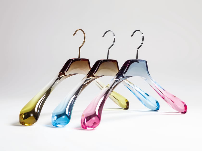Stella Giacca Degradé è una gruccia in plexiglass trasparente con sfumatura degradé disponibile con o senza asta.