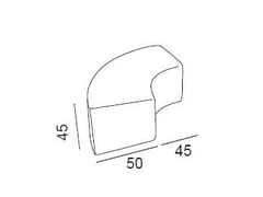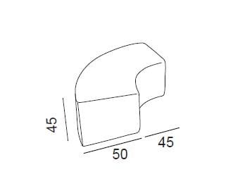 Accostando quattro moduli si forma un cerchio, che al suo interno può contenere un pouf rotondo.