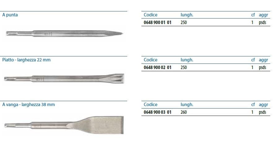 Scalpello attacco SDS-plus indicato per calcestruzzo, muratura, pietre naturali ed artificiali.