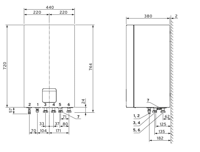 - Vaso di espansione risc., valvola di sicurezza impianto e valvola 3-vie risc/ACS inclusi nella fornitura