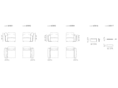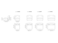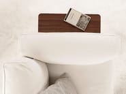 - Accessori bracciolo basso: sacca in cuoio nelle finiture a catalogo, ripiano in noce canaletto o rovere tinto moka