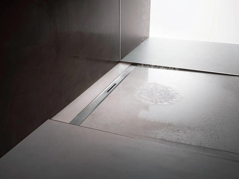Corriacqua e accessori per il deflusso del bagno. Per impermeabilizzante fluido (doccia piastrellata) con guaina impermeabilizzante e collante. Per montaggio a parete e a pavimento. Altezze di montaggio da 0 a 200 mm. Diverse varianti di materiale e di design.