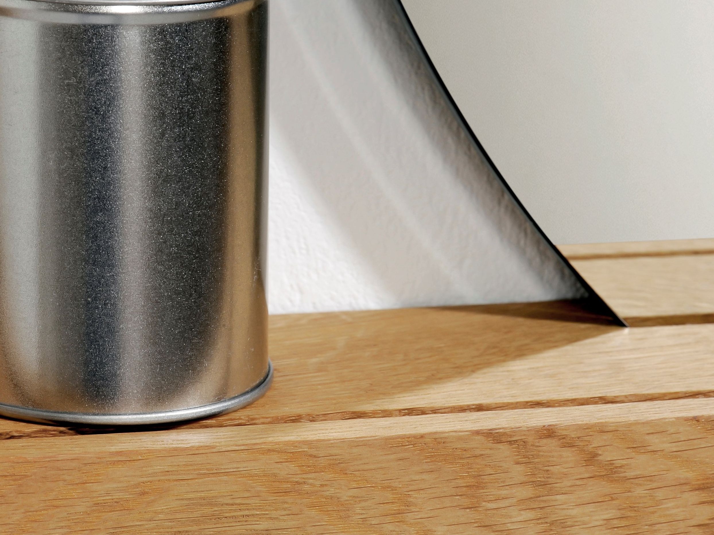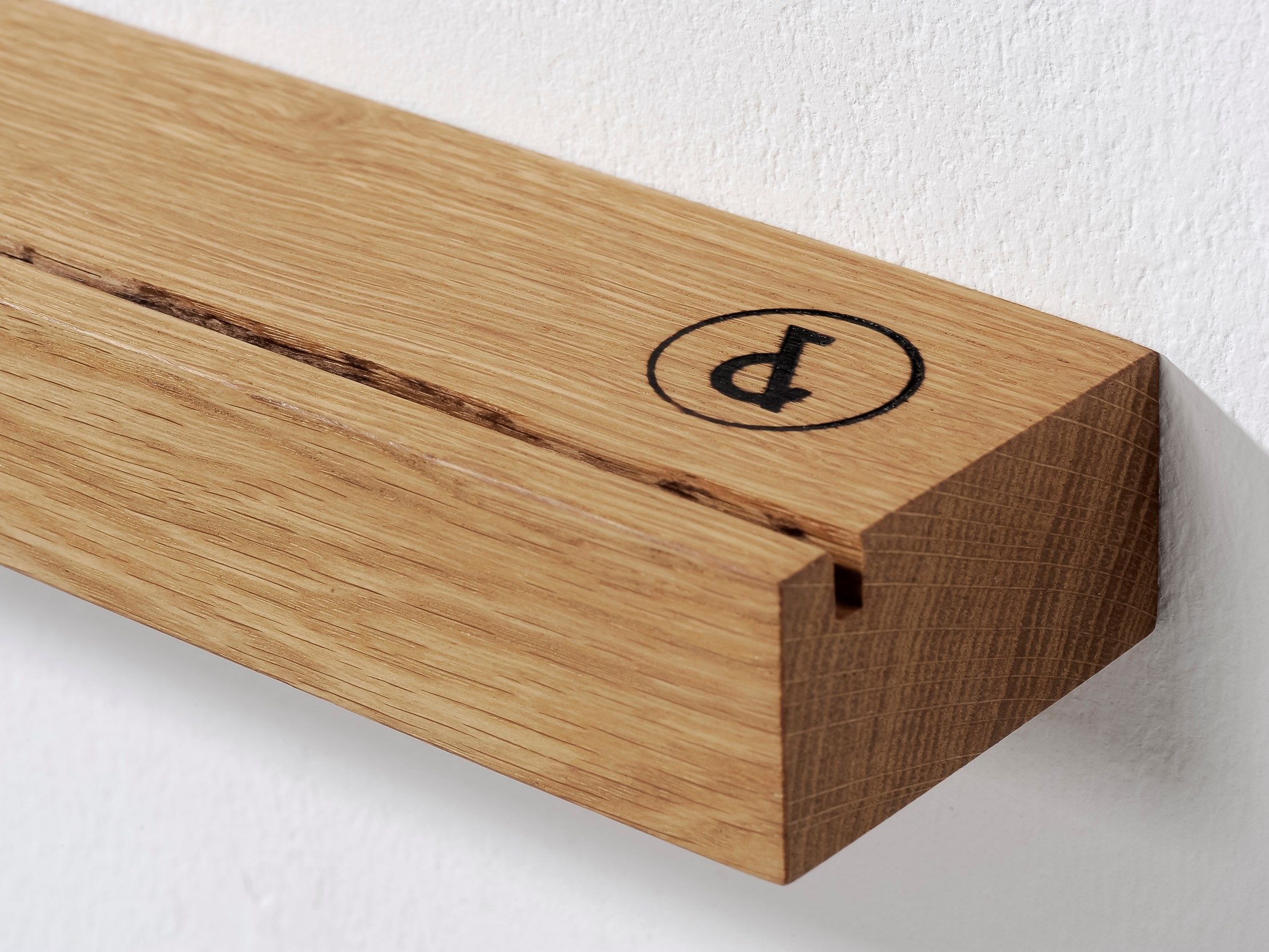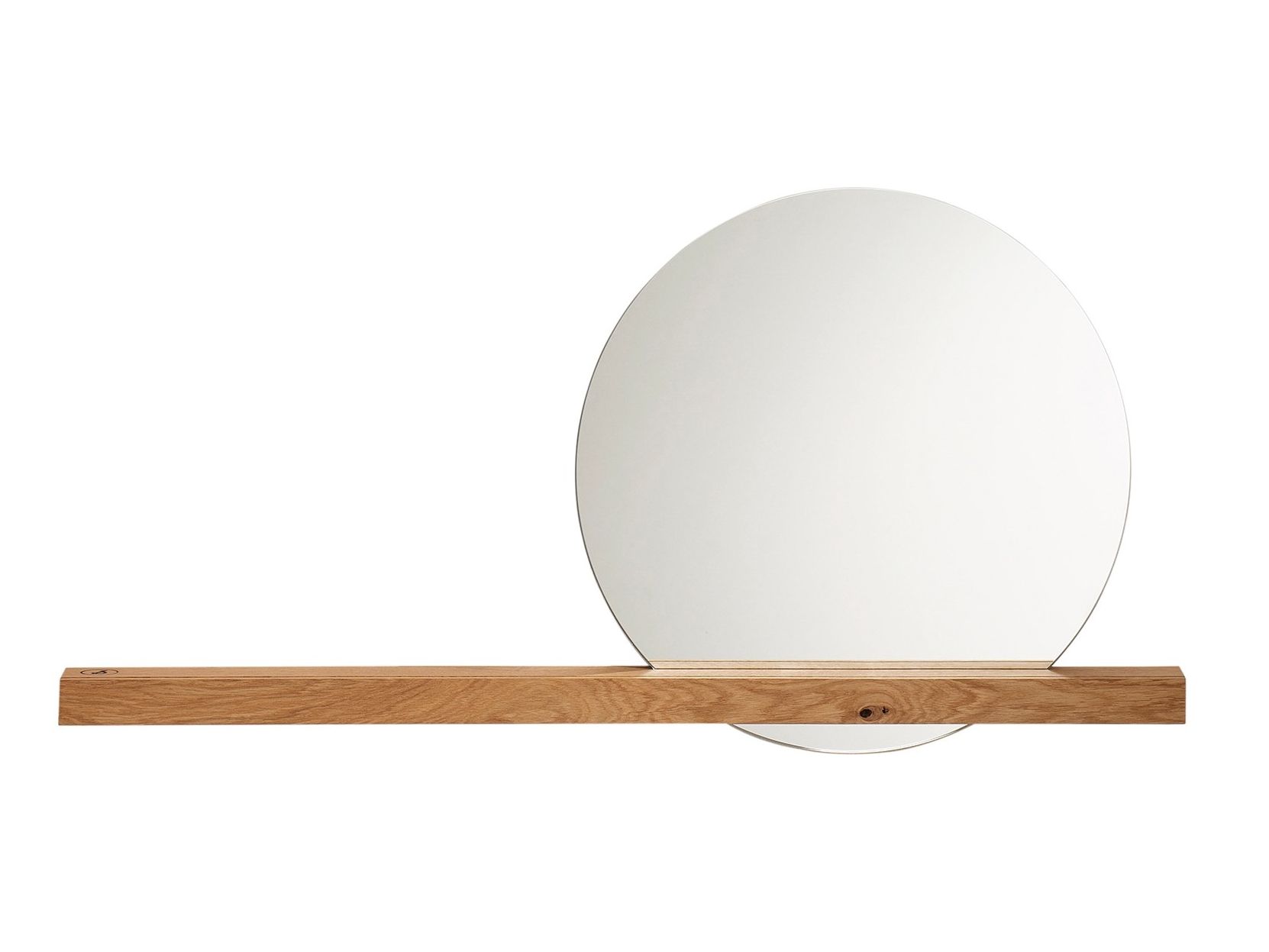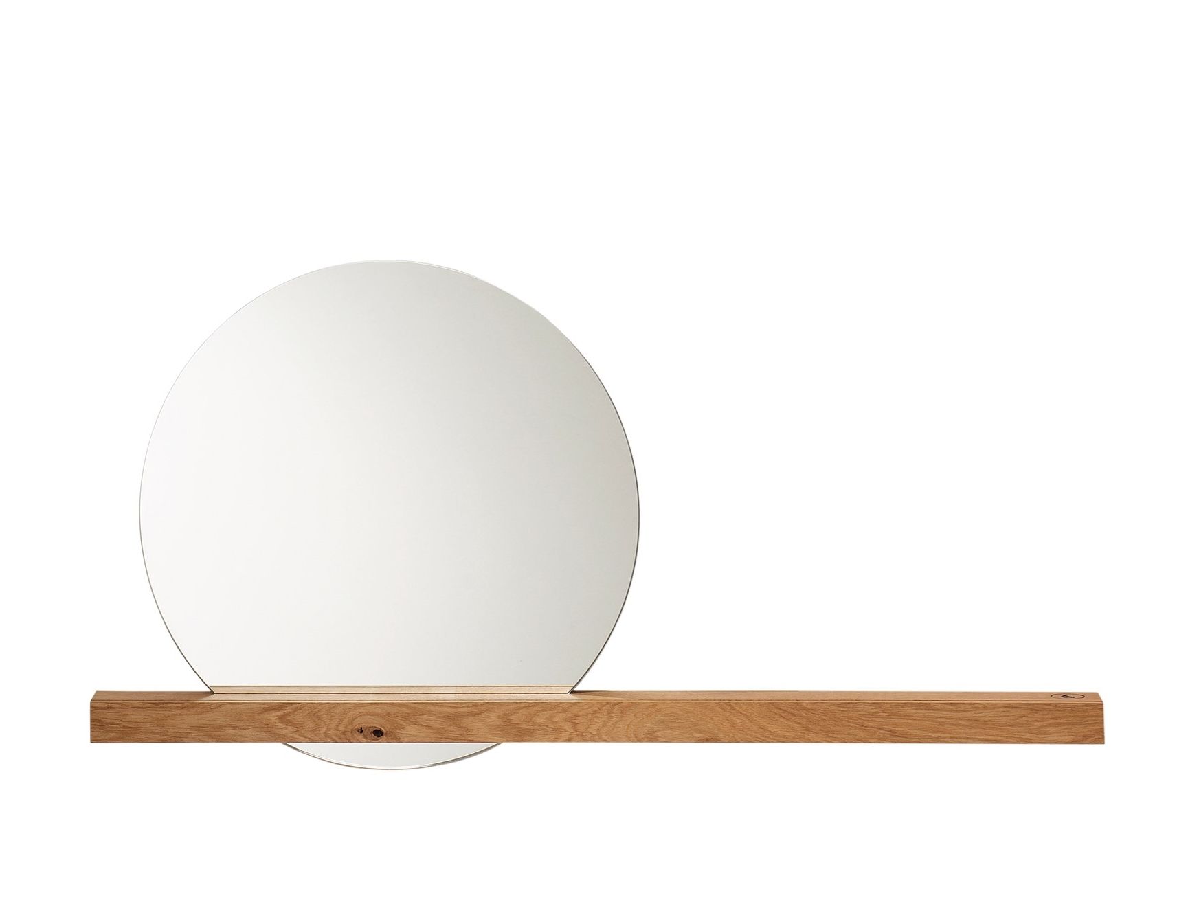 Lo specchio da parete Oak 01 di weld & co combina una sottile sporgenza di massello di rovere oliato con uno specchio rotondo che sembra quasi fluttuare. Questo effetto è reso possibile da una fessura nella mensola: lo specchio e l'apertura sono dimensionati in modo che lo specchio venga automaticamente tenuto in posizione una volta inserito, ottenendo un accattivante mix di forma e funzione.